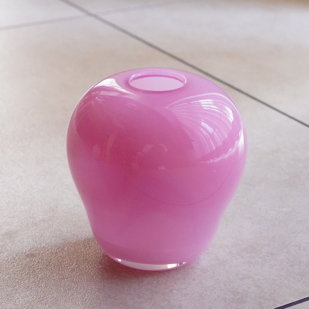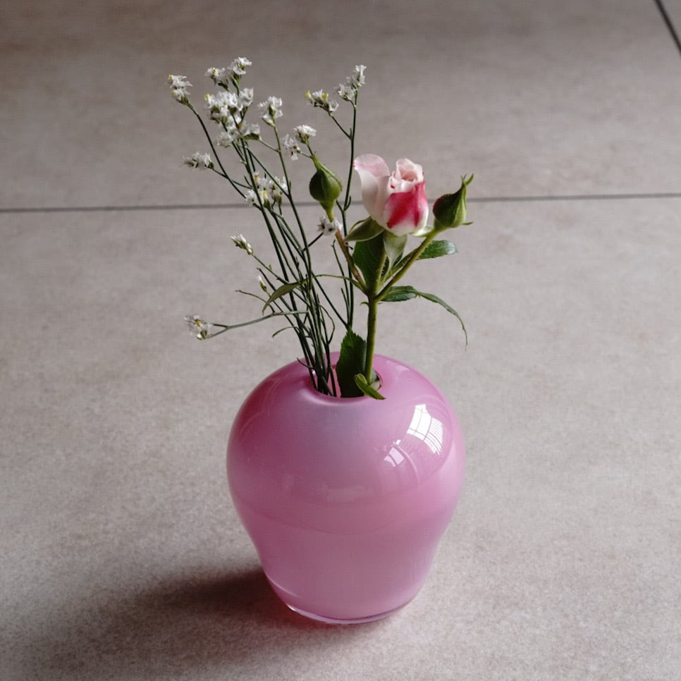 あたたかなピンクが、ガラスの中にふんわりと溶け込んだ花器です。