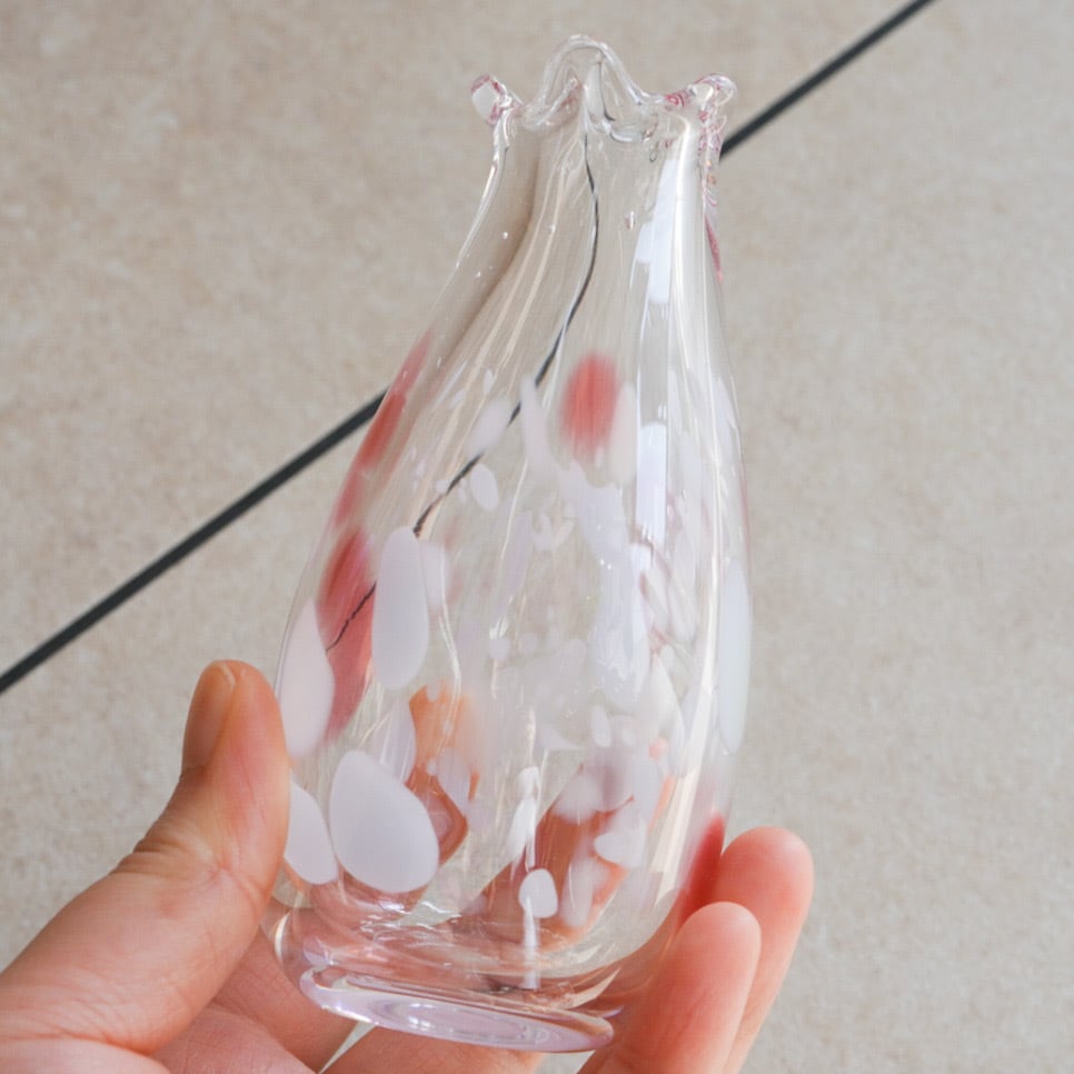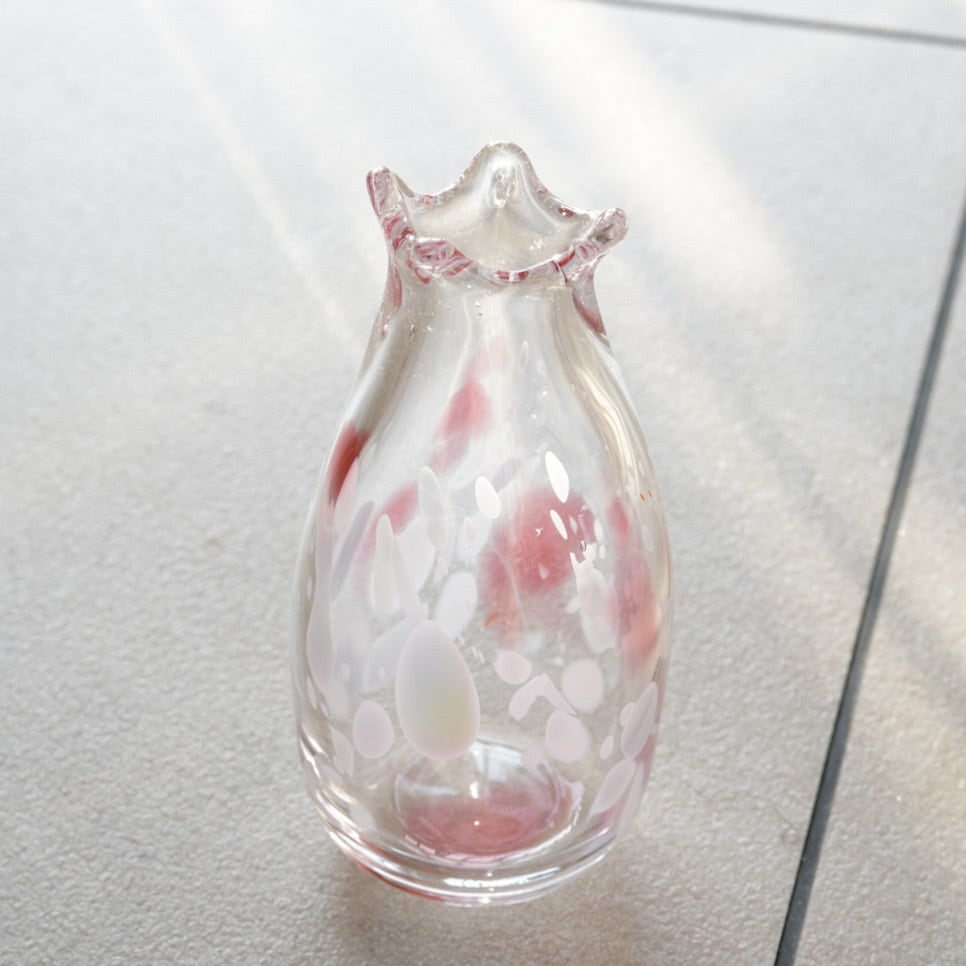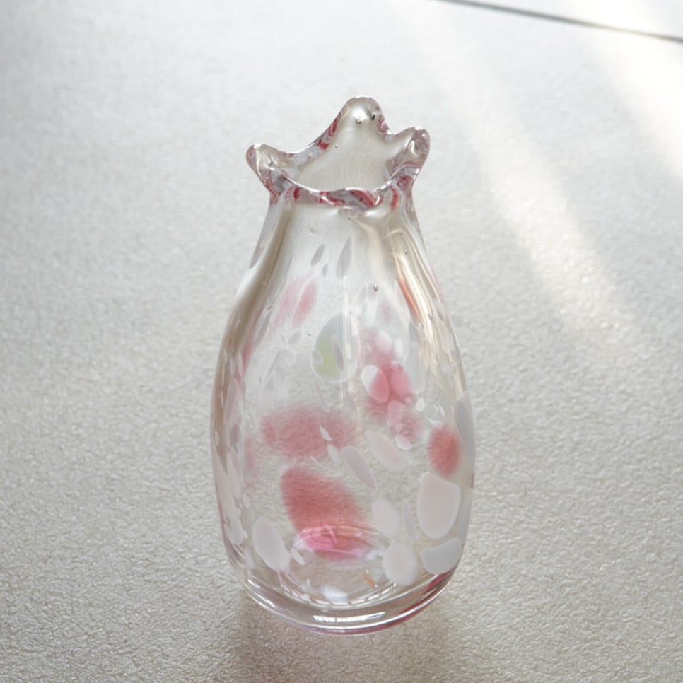 クリアピンクの重なり、目覚めの気配を閉じ込めたような花器。