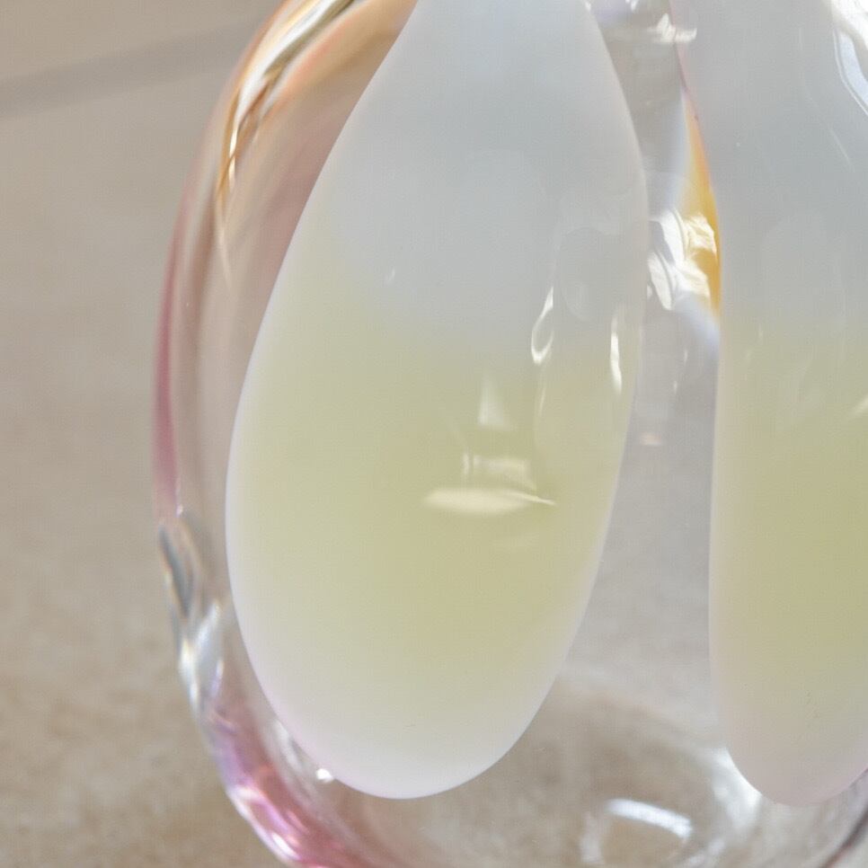 クリアガラスの透明感と柔らかなカラーリングが重なり合い、