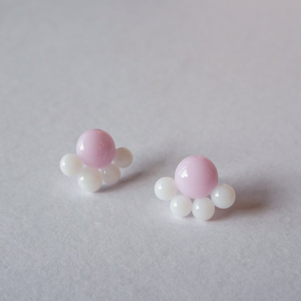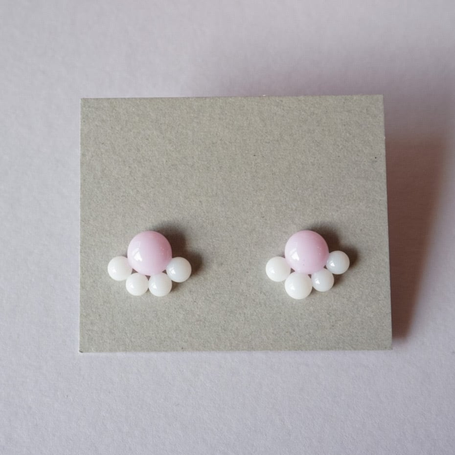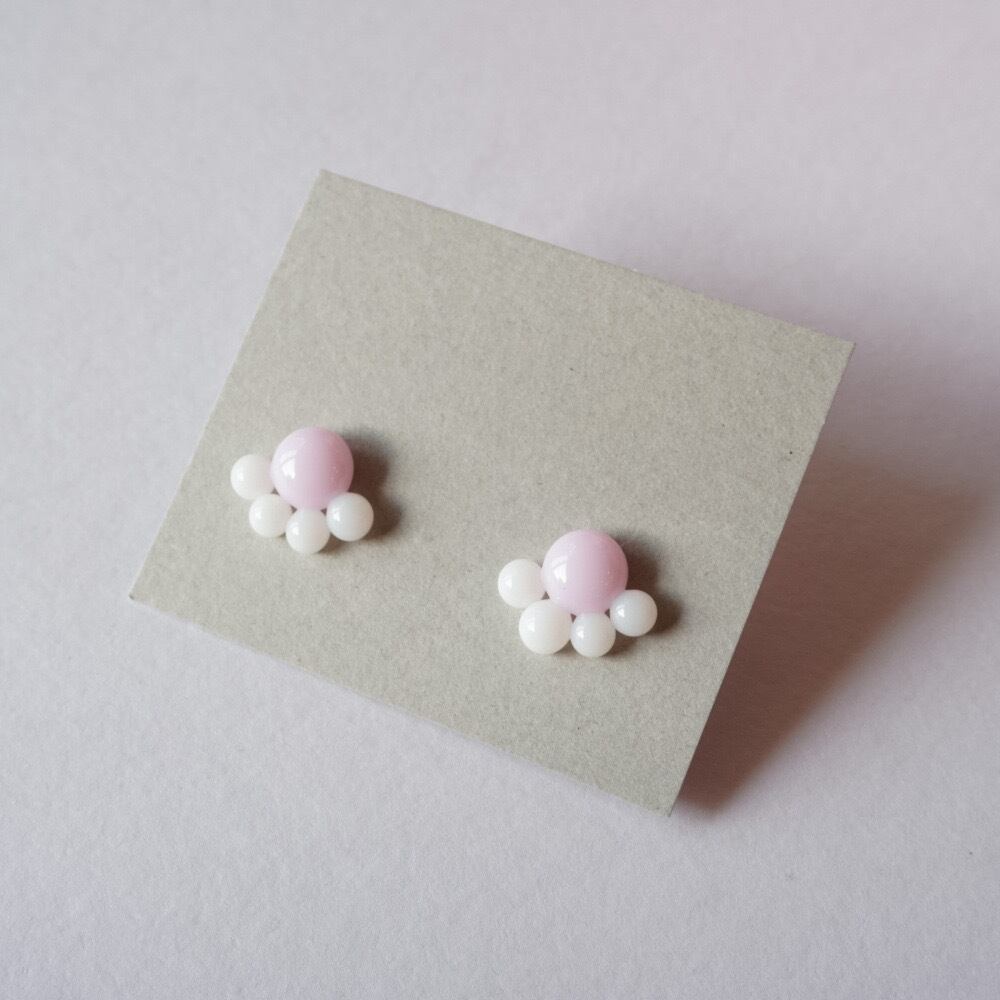 半分だけ花びらが残った花をイメージして作ったピアスです。